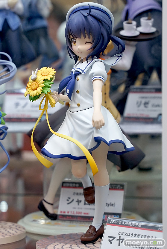 プラムの新作美少女フィギュア「ご注文はうさぎですか?? マヤ(Summer Uniform) 」のおそらくPVC製の彩色サンプルが、あみあみ 秋葉原ラジオ会館店で展示!『元気いっぱいなマヤらしい、ぺろっと舌を出してウインクしている、いたずらな表情がとってもキュート♪ひらりと翻るセーラー服の襟の躍動感や、スカートをつまみ上げた造形など見所が詰まっています。黄色が色鮮やかなブーケ、足元の石畳の台座など細部も丁寧に製作しました。』というものです!その展示の様子を画像レビューとしてお伝えします!