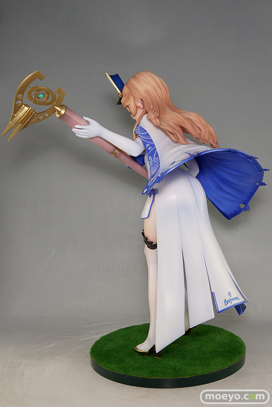 ダイキ工業「デスボール キキョウ」新作美少女フィギュア彩色サンプル画像レビュー(前編)ダイキ工業の新作美少女フィギュア「デスボール キキョウ」が予約受付中!『ハイパースポーツバトル『デスボール』より、キンナリの神の聖職者「キキョウ」を精鋭の蔦風徒子氏が原型を製作、色を秀麗に操る佐倉氏が彩色を担当し立体化!』というもので、マントパーツがキャストオフ可能、前髪・上半身の差し替え用パーツも付属します!そのパーツ変更の様子も含め、最新の彩色サンプルを見せて頂けましたので、2回に分けて画像レビューとしてお伝えします!こちらでは通常状態&マントパーツキャストオフ、前髪差し替え用パーツ装着状態の様子を。