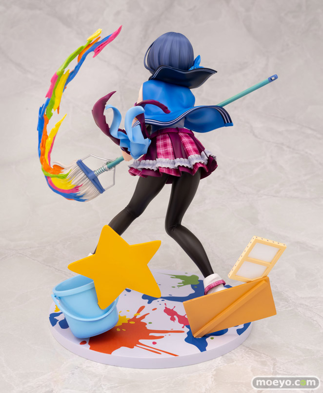 表情は、凛世の繊細な笑顔の魅力を伝えられるよう徹底的にこだわりました。彩色面では、アシンメトリーな袖のカラーやスカートのチェック柄、タイツに並ぶ星を忠実に再現。
