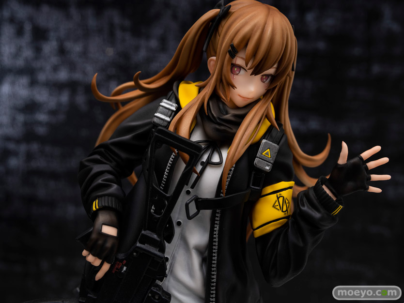 大人気ゲーム『ドールズフロントライン』より、『UMP9』が1/7スケールフィギュアで就任です。メインビジュアルをモチーフに、躍動感あふれるポージングで立体化しました。特徴的でかわいらしい猫口の笑顔や、黒と黄色のコントラストがクールな衣装も緻密に表現しています。また、サイレンサーとホロサイトを装備した「UMP9」もクオリティ高く再現。404小隊のムードメーカー、どんな時も笑顔のUMP9をぜひお手元でお楽しみください。