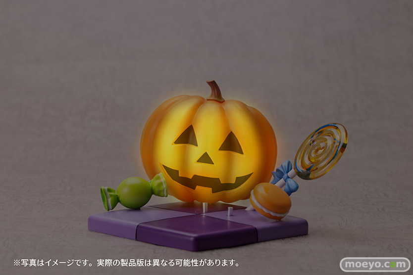 台座のかぼちゃランタンはLEDライトで朧にライトアップ。