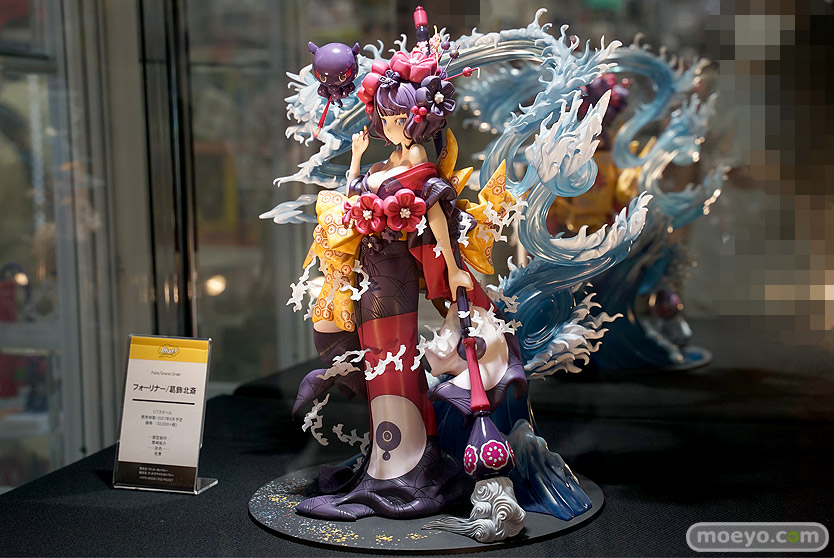 ファット・カンパニー新作美少女フィギュア「Fate/Grand Order フォーリナー/葛飾北斎」の彩色サンプルが、あみあみ 秋葉原ラジオ会館店で展示!『俎板帯や各所にあしらわれた花飾りや大胆にはだけた胸元など、艶やかな花魁風の着崩しが眼を引く第二再臨の姿を忠実に再現しました。波をイメージした巨大なエフェクトパーツや彼女の周りを舞う「海上の不二」をイメージした千鳥の再現など、稀代の浮世絵師たる北斎を想起させるパーツも惜しみなく投入し、これまでにないボリュームでお送りします!』というもので、原型制作は間崎祐介さん。彩色は佐倉さん。その展示の様子を画像レビューとしてお伝えします!