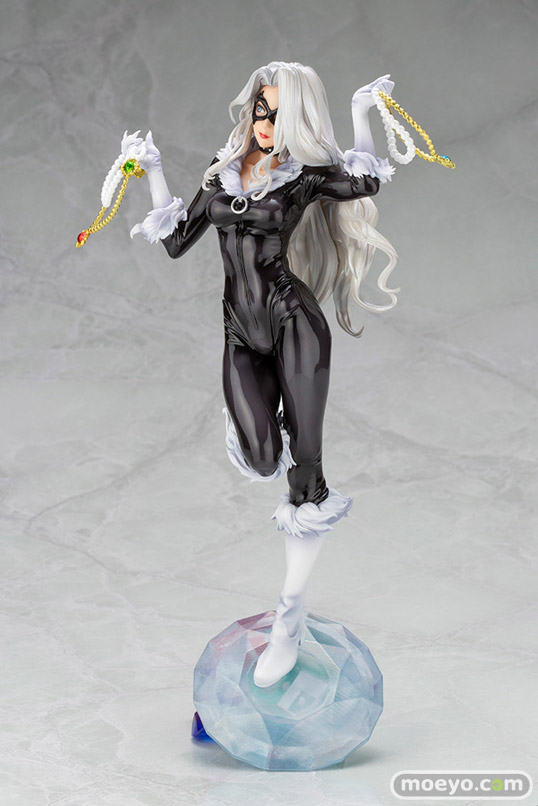 コトブキヤの新作美少女フィギュア「MARVEL美少女 MARVEL UNIVERSE ブラックキャット Steals Your Heart」が予約受付開始!『山下しゅんや氏が描き下した新たなアートをke(小抹香)氏による緻密な造形で立体化しました。美しい銀髪にはパール塗装、ボディスーツにはグロス塗装、そして足元のひときわ大きな宝石はメッキ加工を用いることで、一見シンプルなカラーリングながらもメリハリを持たせています。』というもので、原型制作はke(小抹香)さん。そのサンプルの様子を、画像レビューとしてお伝えします!