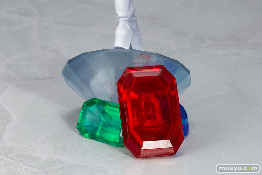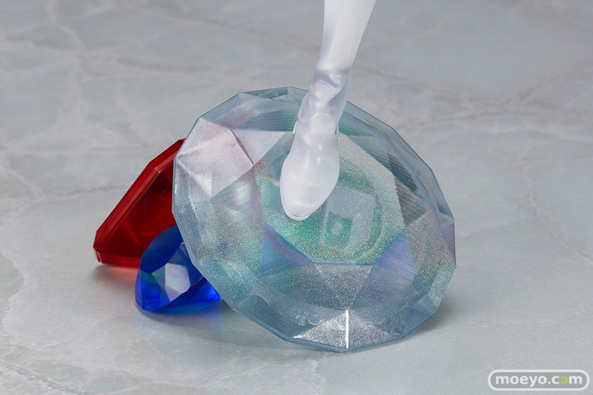 美しい銀髪にはパール塗装、ボディスーツにはグロス塗装、そして足元のひときわ大きな宝石はメッキ加工を用いることで、一見シンプルなカラーリングながらもメリハリを持たせています。