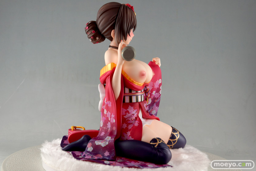 Pink・Catの新作MOLOエロフィギュア「魔太郎オリジナルキャラクター 振袖剥いちゃいました」が予約受付開始!『お正月に晴れ着を着てオシャレをしたけどついつい飲みすぎて…酔っ払った勢いでつい振袖を剥いちゃいました。そんな可愛いお姉さんをフィギュアで再現しました。R18胸パーツは交換式。パンティは脱いだままです。』という最初からMOLO部分丸出しという素敵な一品で、原型制作はA’mさん。胸にはこぼしたお酒をシール式透明部品で再現し、徳利を大人のおもちゃに交換が可能!その最新の彩色サンプルを見せて頂けましたので、画像レビューとしてお伝えします!(アダルトフィギュアとなります!18歳未満の方は閲覧をお控えください。)