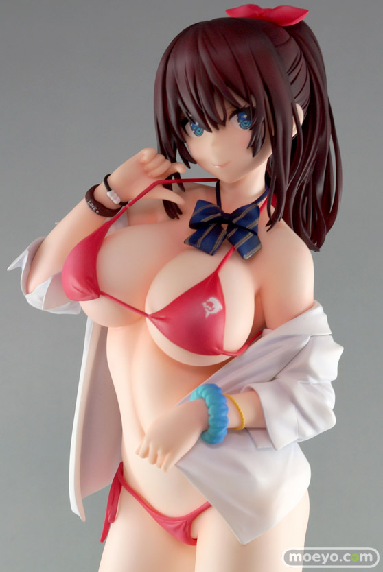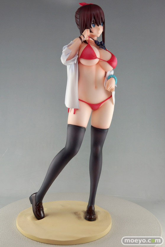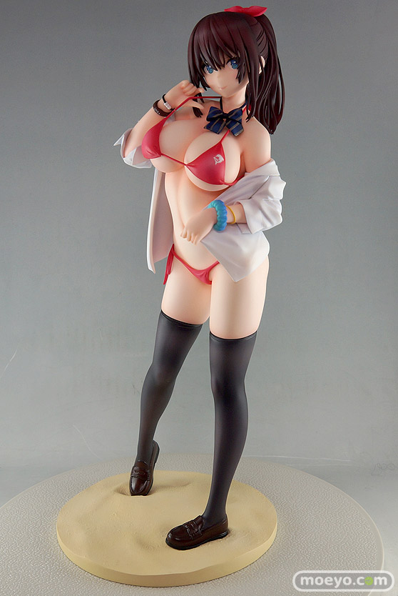 えいてぃーんの新作エロフィギュア「魔太郎イラスト『海凪まりな』」が予約受付開始!『人気イラストレーター魔太郎氏が描く、秋田書店いちごストアにて描き下ろしの「常夏の誘惑ビキニ」から海凪まりながフィギュア化!真夏のビーチで微笑む姿を1/6スケールで立体化しました。ビキニはもちろん、お好みで制服のリボンも着脱可能です。今にもこぼれ落ちそうなバストやヒップを是非ご堪能ください。』というもので、原型制作は根本克昭さん。彩色製作はトルマリンゴリラさん。水玉ビキニバージョンのいちごストア限定版も同時に予約開始!その通常版となる赤ビキニバージョンの最新彩色サンプルを見せて頂けましたので、画像レビューとしてお伝えします!(アダルトフィギュアとなります!18歳未満の方は閲覧をお控えください。)