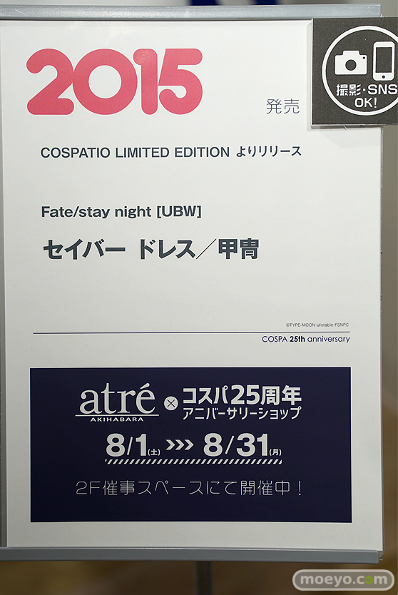 コスパが今年25周年であることを記念し、コスパ史の原点となる様々なアイテムを展示する「何とな~くコスパの25年がわかる!展」が、アトレ秋葉原1店の3階にて2020年8月31日まで開催中!会場では画像のセイバードレス/甲冑など、コスパ史を語る上で重要なファクターとなった衣装やアイテムなどが展示されていました。その会場の様子をざっくりとですが、フォトレポートとしてお伝えします!