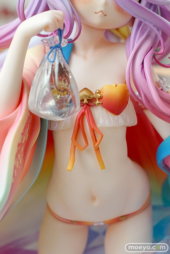 TVアニメ『ノーゲーム・ノーライフ』より、主人公のゲーマー兄妹『 』(くうはく)の一人・「白」が1/7スケールフィギュアで登場です!普段の引きこもりスタイルはどこへやら、水着に浮き輪、シュノーケル、更には浴衣を身に着けたサマーシーズンそのもののスタイルで立体化しました。本作品の独創的かつ繊細なタッチや色使いを再現した彩色は季節に合わせてトロピカルな雰囲気をより強めています。手に持った金魚掬いならぬ空掬いの袋や精密に描かれたニーソックスの模様なども要注目ポイントです!