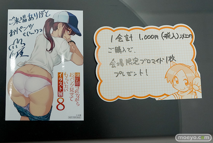 高精細出力による新作『嫌パン』イラストの展示と新作グッズの販売を行う「嫌な顔されながらおパンツ見せてもらいたいイラスト展8」が、とらのあな秋葉原店B 3階にて8月30日(日)まで開催中です!会場ではエモントイズの新作美少女フィギュア「アイドルのYuina」の彩色サンプルも展示!その会場の様子をざっくりとですが、フォトレポートとしてお伝えします!
