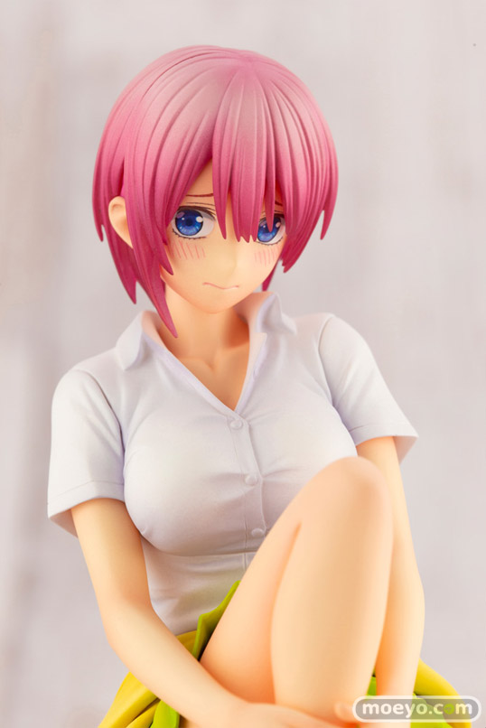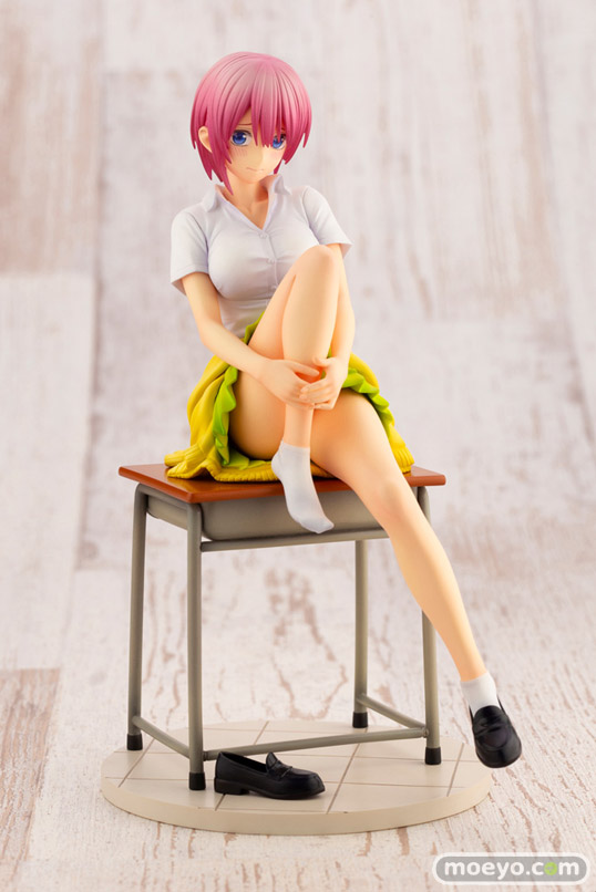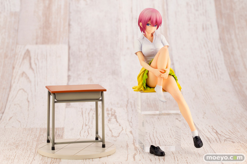 コトブキヤの新作美少女フィギュア「五等分の花嫁 中野一花」が予約受付開始!『片足を抱えながら机に腰掛けたポーズで立体化致しました。さながらモデル撮影かのような姿に一花の大人っぽさを存分に感じられるアイテムとなっています。少し挑発的な笑みが印象的。差し替えパーツとして”ドキッと戸惑い顔”も付属!余裕のない一花の貴重な表情もお楽しみいただけます。』というもので、原型制作は関雄大さん・コトブキヤさん。そのサンプルの様子を、画像レビューとしてお伝えします!