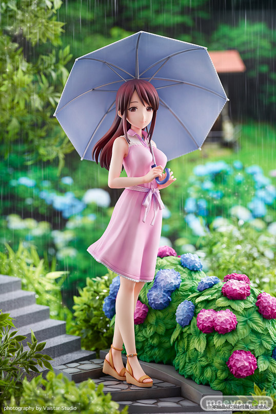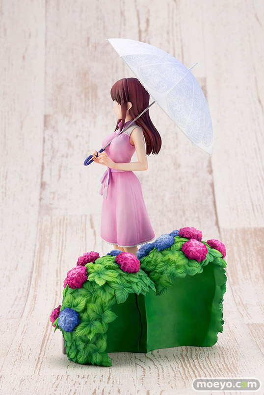 背後には、精巧に造形されたあじさいがフィギュア全体を彩ります。