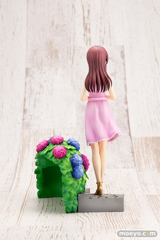 コトブキヤの新作美少女フィギュア「アイドルマスター シンデレラガールズ 三船美優-off stage-」が予約受付開始!『「プロデューサーだから見ることのできる、舞台(ステージ)の外の彼女たち」をコンセプトに、コトブキヤがお贈りする新プロジェクト。第一弾は『アイドルマスター シンデレラガールズ』より、三船美優が待望のフィギュア化!彼女の様々な一面も見られるイベント「アイドルプロデュース 鎌倉あじさい巡り」をイメージして立体化いたしました。』というもので、原型制作はブレインさん。そのサンプルの様子を、画像レビューとしてお伝えします!
