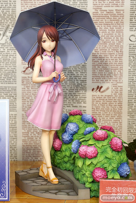 コトブキヤの新作美少女フィギュア「アイドルマスター シンデレラガールズ 三船美優-off stage-」の彩色サンプルが、秋葉原のコトブキヤ秋葉原館とあみあみ 秋葉原ラジオ会館店で展示!『「プロデューサーだから見ることのできる、舞台(ステージ)の外の彼女たち」をコンセプトに、コトブキヤがお贈りする新プロジェクト。第一弾は『アイドルマスター シンデレラガールズ』より、三船美優が待望のフィギュア化!彼女の様々な一面も見られるイベント「アイドルプロデュース 鎌倉あじさい巡り」をイメージして立体化いたしました。』というもので、原型制作はブレインさん。そのサンプルの様子を、画像レビューとしてお伝えします!