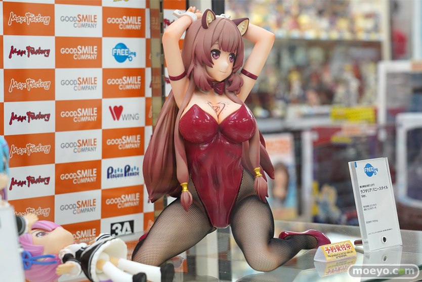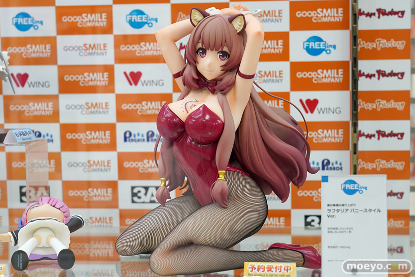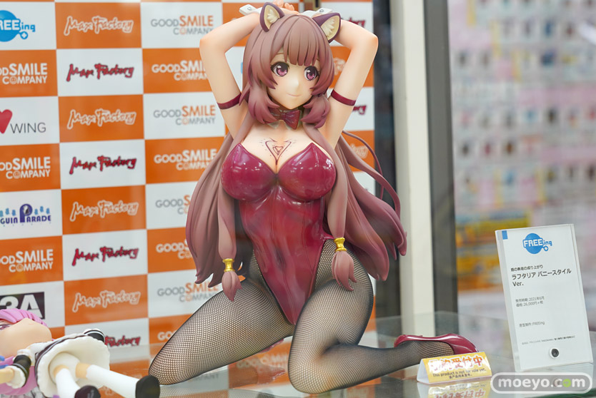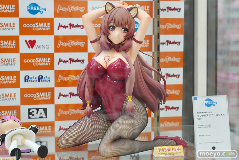 フリーイング新作美少女フィギュア「B-STYLE 盾の勇者の成り上がり ラフタリア バニースタイルVer.」の彩色サンプルが、アキバのボークスホビー天国で展示!『小説にアニメなど、様々なメディアで盛り上がりを見せるTVアニメ『盾の勇者の成り上がり』より、亜人のヒロイン「ラフタリア」が、バニー風衣装で登場です。美少女へと成長した「ラフタリア」の、劇中とは一味違ったシチュエーションを、1/4スケールで立体化しました。高級感のあるグロス仕様のバニー衣装や、リアル質感にこだわった布製網タイツなど、見どころも溢れる逸品となっております。ちょっとセクシーな「ラフタリア」を、是非ともあなたのパーティーに加えてくださいませ。』というものです!その展示の様子を画像レビューとしてお伝えします!