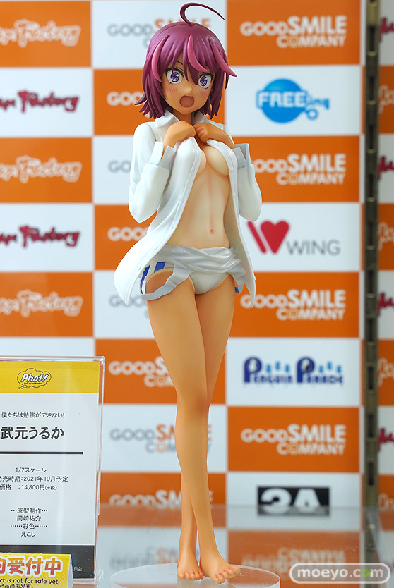 ファット・カンパニーの新作美少女フィギュア「ぼくたちは勉強ができない! 武元うるか」の彩色サンプルが秋葉原のボークスホビー天国で展示!『部活の後の着替え中のところに鉢合わせをしたようなシチュエーションにて立体化しました!驚きと羞恥を感じさせるような表情や、トレードマークともいえる日焼け跡の表現にこだわったうるかを是非お手元でお楽しみください!』というもので、原型制作は間崎祐介さん。彩色はえこしさん。その展示の様子を画像レビューとしてお伝えします!