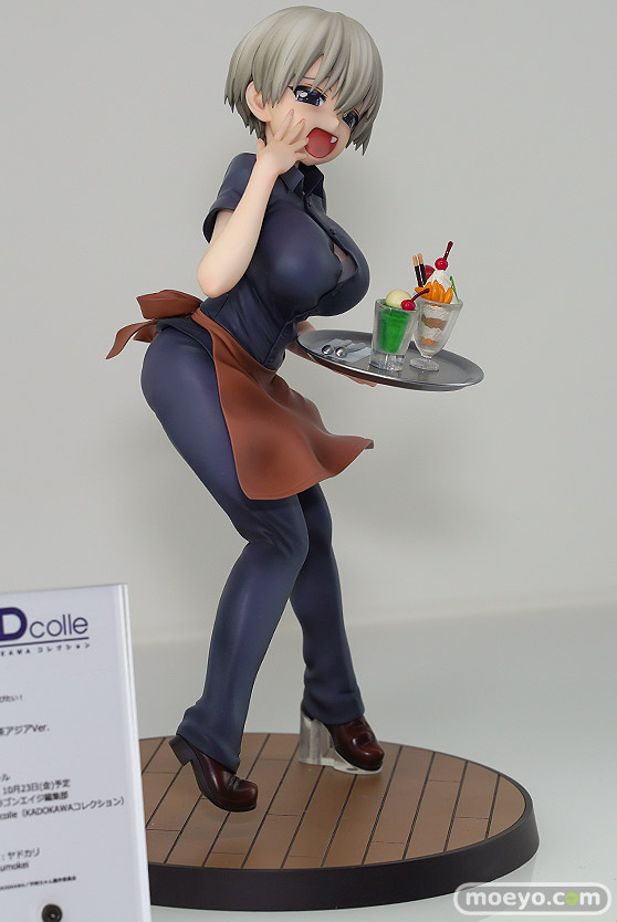 KADOKAWA新作美少女フィギュア「KDcolle 宇崎ちゃんは遊びたい! 宇崎花 原作版 喫茶アジアVer.」が予約受付開始!『原作コミック3巻の表紙イラストをモチーフにバイト先「喫茶アジア」の制服姿で原作版として立体化しました。宇崎ちゃんのウザい表情はもちろんSUGOI-DEKAIをウザ可愛く再現しました。ノーマルの「ウザ」表情に加え「きれいな宇崎」表情にも差し替え可能!さらに、ボタンが弾け飛んだ状態にできる「おまけシャツパーツ」も付属します。』というもので、原型制作はヤドカリさん。彩色はtaumokeiさん。企画はドラゴンエイジ編集部さん。制作はKDcolle(KADOKAWAコレクション)さん。「ワンホビギャラリー 2020 AUTUMN」の会場で展示されていた、ボタンが弾け飛んだ状態の彩色サンプルの様子を、画像レビューとしてお伝えします!