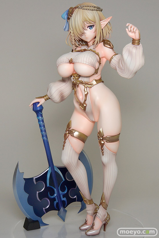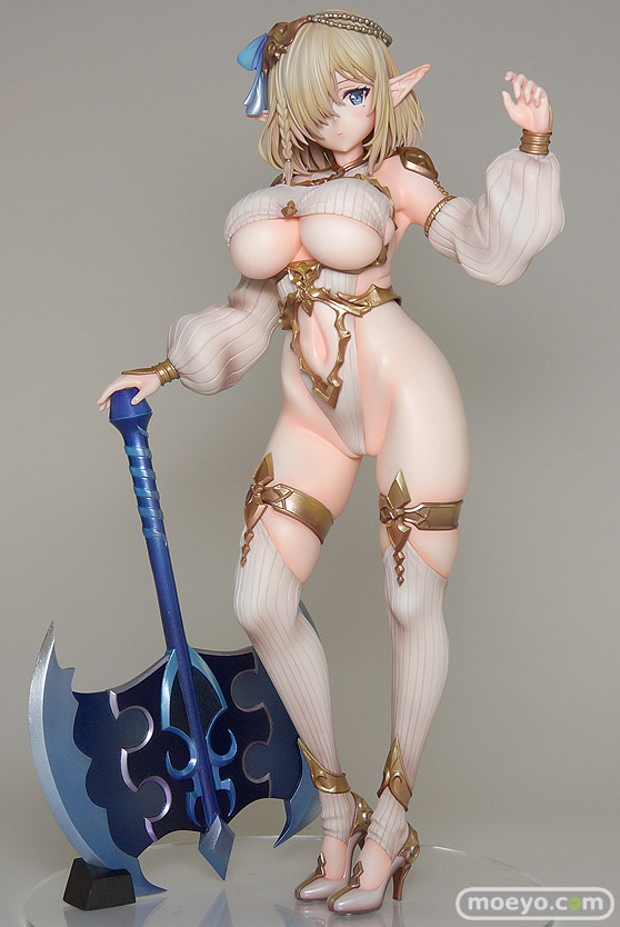 今回は魔太郎さんデザイン!ヴェルテクス「エルフ村 第5村人 ククル」新作美少女フィギュア彩色サンプル画像レビューヴェルテクスの新作美少女フィギュア「エルフ村 第5村人 ククル」が予約受付開始!『ヴェルテクスオリジナルフィギュアシリーズ『エルフ村』より、魔太郎氏がデザインを手掛けた「第5村人 ククル」が登場!片目を隠してクールなたたずまいではありますが、実は「第3村人 リンシア」とは幼馴染で、武器の腕を子供の頃から鍛えあった仲。小鳥の友達・フィンとの散歩を趣味とし、従来の穏やかな性格も垣間見えます。魔法鉱物をイメージした巨大な斧と、しなやかな肢体のコントラストをお楽しみください。』というもので、原型制作はふぉるとねいしょんさん。彩色担当はりーさん。一部衣装のキャストオフも可能です。その様子も含め、最新の彩色サンプルを見せて頂けましたので、画像レビューとしてお伝えします!