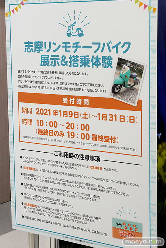 「犬山あおい」や「志摩リンモチーフバイク」展示など 秋葉原の新作フィギュア、グッズ展示の様子(2021年1月9日)画像の「ゆるキャン△ 犬山あおい」や「志摩リン」のサンプル展示、アニメ設定画を参考に作られた「志摩リンモチーフバイク」の展示、搭乗体験、記念撮影実施など、2021年1月9日の秋葉原の新作、製品版フィギュア、グッズ展示の様子を画像レビューとしてお伝えします!