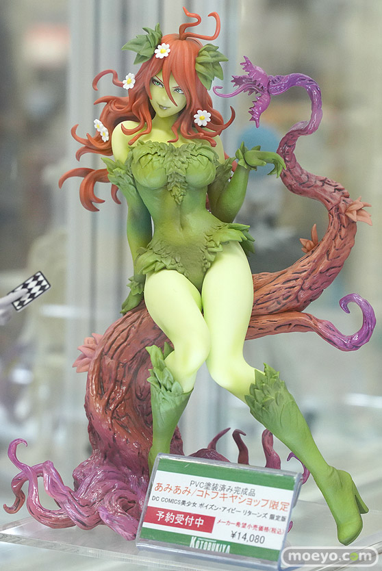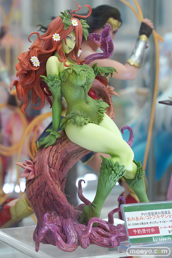 あみあみ&コトブキヤショップ限定品となる「DC COMICS美少女 DC UNIVERSE ポイズン・アイビー リターンズ 限定版」の彩色サンプルが、あみあみ 秋葉原ラジオ会館店で展示!『さらに妖しく危険に!妖艶でありながら柔和な印象だった通常版から一転!更にヴィランらしくなった雰囲気に注目です。好評を博した藤本圭紀による原型はそのままに、危険な思想が垣間見える表情を新規造形で再現。登場初期の緑色の肌や赤髪のニュアンスだけではなく、腰かけた巨大な植物モンスターも毒々しいカラーリングに変更!』というもので、原型制作は藤本圭紀さん。イラストは山下しゅんやさん。その展示の様子を画像レビューとしてお伝えします!
