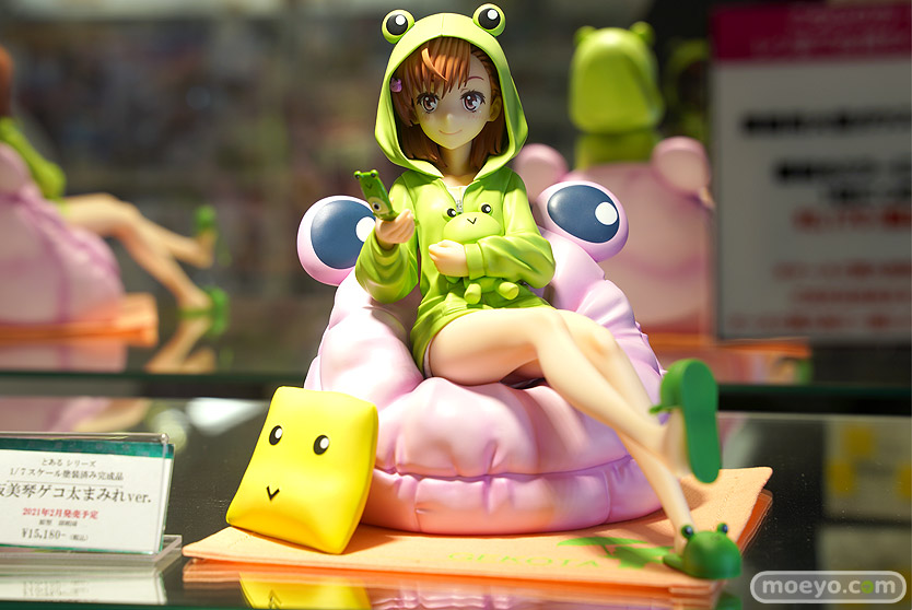 2021年2月に発売予定のコトブキヤ新作美少女フィギュア「とある科学の超電磁砲T 御坂美琴ゲコ太まみれver.」の、おそらく製品版同等と思われる彩色サンプルが、コトブキヤ秋葉原館で展示!『TVアニメ放送中の『とある科学の超電磁砲T』より、「御坂美琴ゲコ太まみれver.」が登場!月刊コミック電撃大王編集部全面協力で「大好きなゲコ太のグッズに囲まれて至福のひと時を過ごす美琴」をコンセプトにした描き下ろしアニメイラストを基に立体化しました!』というもので、原型制作は邱明埼さん。その展示の様子を画像レビューとしてお伝えします!