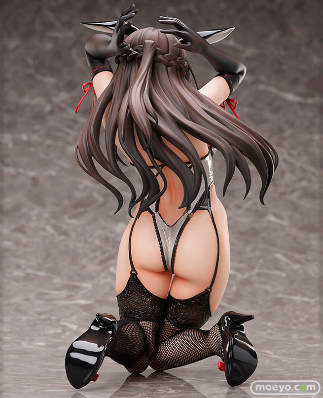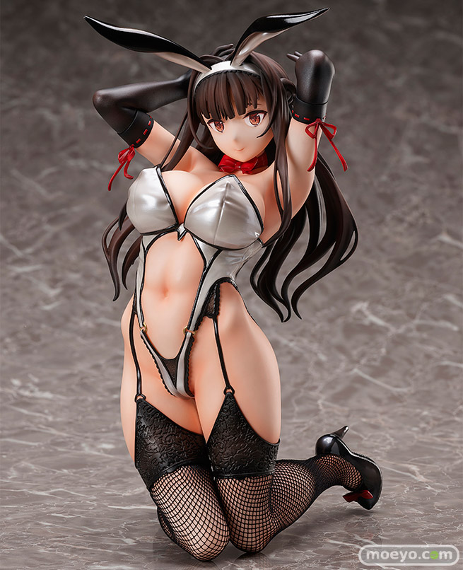 肉付きの良さなど、氏のイラストの特徴である肉感的なボディを1/4スケールで余すところなく立体化しました。またコスチュームは、サテン素材のインナースーツ調のバニースーツはイラストを忠実に造形、彩色でしっかり再現。