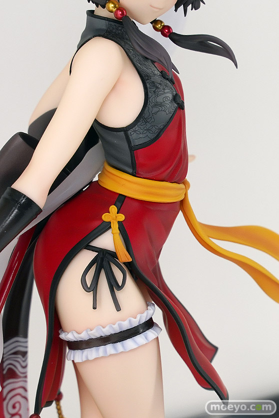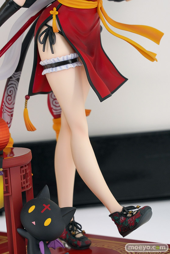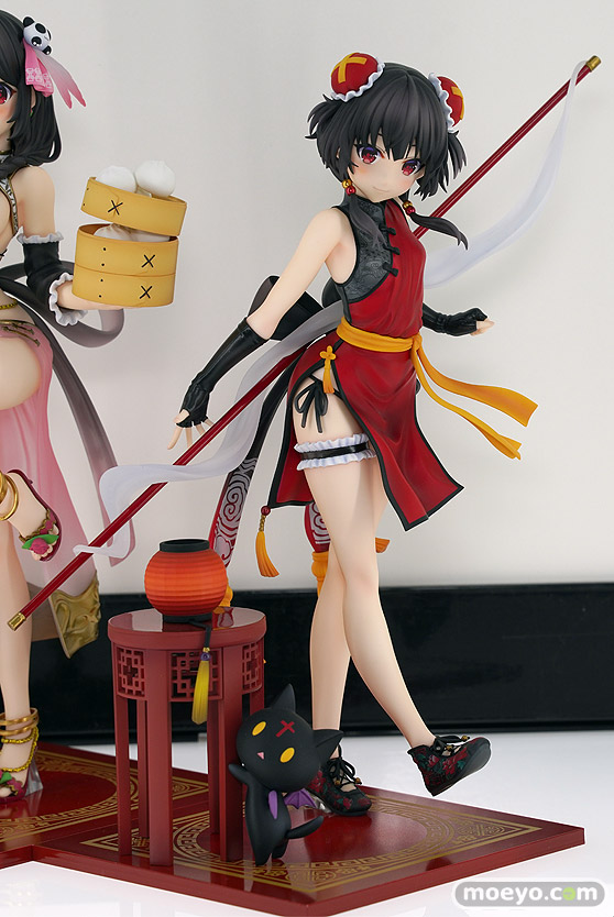 氏のオリジナルデザインである流麗なチャイナドレスをはじめ、澄ました表情で饅頭を頬張るめぐみんの愛らしい表情を見事に再現しています。さらに傍らの「ちょむすけ」も存在感ある仕上がりとなっています。また饅頭は取り外し可能となっており、うっすら微笑む表情にして飾ることもできます。