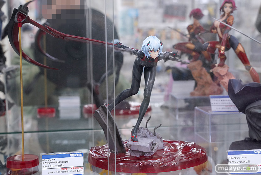 メガハウス新作美少女フィギュア「G.E.M.シリーズ ヱヴァンゲリヲン新劇場版 アヤナミレイ(仮称)」彩色サンプルがアキバで展示!メガハウスの新作美少女フィギュア「G.E.M.シリーズ ヱヴァンゲリヲン新劇場版 アヤナミレイ(仮称)」の彩色サンプルが、あみあみ 秋葉原ラジオ会館店で展示!『プラグスーツに身を包み、手には「大鎌」を持ち、戦闘シーンを体感できるフィギュアとなっております。大鎌を大胆にふり、細身のシルエットながらも横幅約300mmとボリューム感たっぷりです。』というもので、原型制作はぴろんさん。彩色はTcさん。その展示の様子を画像レビューとしてお伝えします!