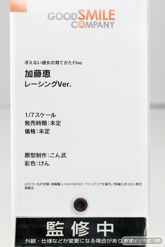 GOODSMILE ONLINE SHOP限定販売となるグッドスマイルカンパニー新作美少女フィギュア「冴えない彼女の育てかた Fine 加藤恵 レーシングVer.」の彩色サンプルが、「ワンホビ32」の会場で展示!制服をアレンジした感じのデザインとなっているレースクイーン姿での立体化となるもので、原型制作はこん武さん。彩色はけんさん。その展示の様子を画像レビューとしてお伝えします!