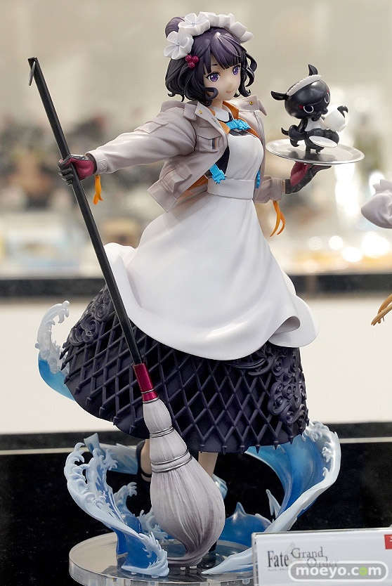 アニプレックスの新作美少女フィギュア「Fate/Grand Orderフォーリナー/葛飾北斎 英霊祭装ver.」の彩色サンプルが、秋葉原のアニプレックスアンテナショップで展示!『北斎が身を包むメイド服のスカートに施された、レースの細かい意匠を丁寧かつ精巧に造形。グローブや筆、髪飾りなどの各パーツも、素材感や質感を追求した彩色で再現しました。お盆にちょこんとのったメイド風のととさまも、かわいく再現されています。さらに、イラストでは見られなかった背面側の作り込みにもこだわりが。』というもので、原型制作はLAN(knead)さん。彩色は、しらくらはく(株式会社 松田モデル)さん。その展示の様子を画像レビューとしてお伝えします!