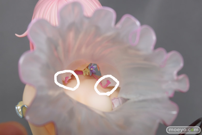 分割部分からキャミソールパーツを本体から脱がすと、首から伸びた紐パーツが(丸で囲んだ二か所)見えます。