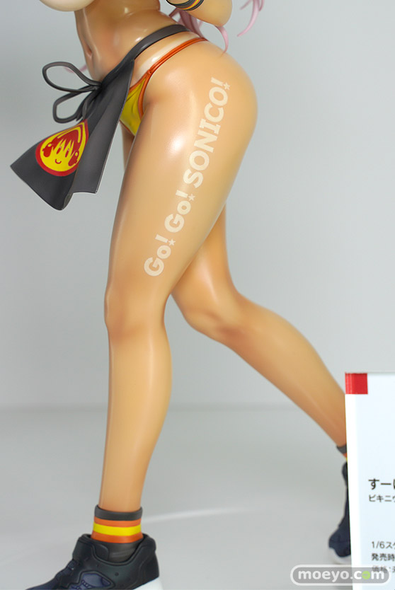 マックスファクトリー新作美少女フィギュア「すーぱーそに子 ビキニウェイトレスVer.」予約受付開始!【ワンホビ33】マックスファクトリーの新作美少女フィギュア「すーぱーそに子 ビキニウェイトレスVer.」が予約受付開始!『すーぱーそに子がセクシーなビキニウェイトレス姿で登場!津路参汰氏が描きおろしたイラストを元に1/6スケールで立体化いたしました。ビッグサイズのカレーを両手に持って元気に配膳する姿を切り取ったこちらのフィギュア、躍動感あるバスト以外にも日焼け跡の表現、肌の艶感など見所たっぷりとなっております。』というもので、原型制作はグリズリーパンダさん。彩色は彩部一路さん。「ワンホビ33」の会場で展示されていた彩色サンプルの様子を、画像レビューとしてお伝えします!