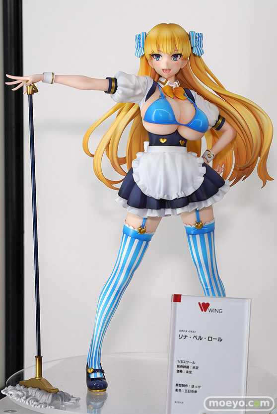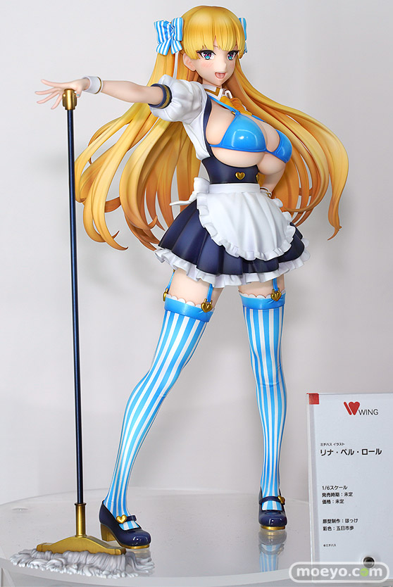 ウイング新作美少女フィギュア「ミチハスオリジナル リナ・ベル・ロール」予約受付開始!【ワンホビ33】ウイングの新作美少女フィギュア「ミチハスオリジナル リナ・ベル・ロール」が予約受付開始!『大胆なデザインのウェイトレス衣装を身にまとい、元気な笑顔ではりきってお掃除する様子を再現しました。』というもので、原型制作はほっけさん。彩色は五日市歩さん。製品版ではむすっとした表情の照れ顔と、上半身の差し替えパーツを使用することでセクシーなイメージに変身し、その際は胸部のニップレスが取り外し可能!「ワンホビ33」の会場で展示されていた彩色サンプルの様子を、画像レビューとしてお伝えします!
