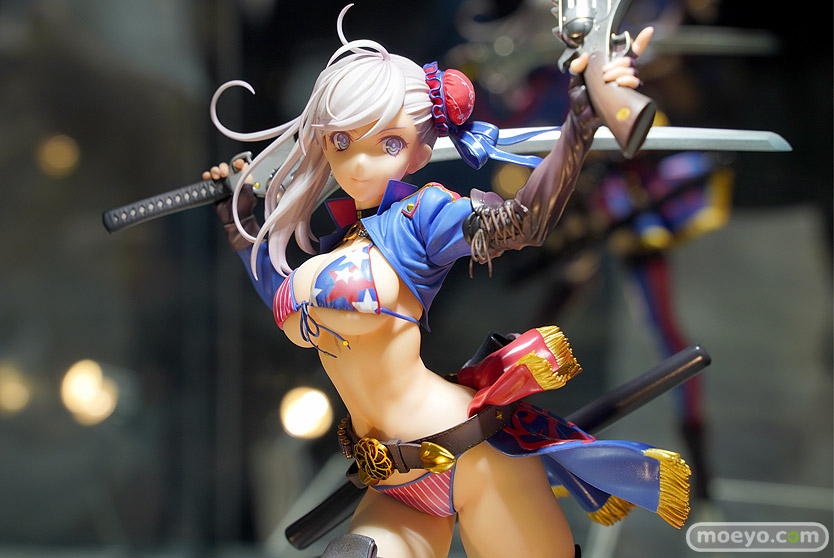 予約開始されたばかりのアルター新作美少女フィギュア「Fate/Grand Order バーサーカー/宮本武蔵」の彩色サンプルが、あみあみ 秋葉原ラジオ会館店で展示!『爽快な笑顔で軽やかに二刀流を構えたポーズはなびく髪やフリンジなど躍動感たっぷり。反らした胸のボリューム感や引き締まった腰など魅力的なボディーラインが目を引きます。ウエスタンブーツやベルトの細かな装飾、革の質感を感じさせる造形も見所です。』というもので、原型制作は田中冬志さん。原型協力はアルターさん。彩色は鉄森七方さん。その展示の様子を画像レビューとしてお伝えします!