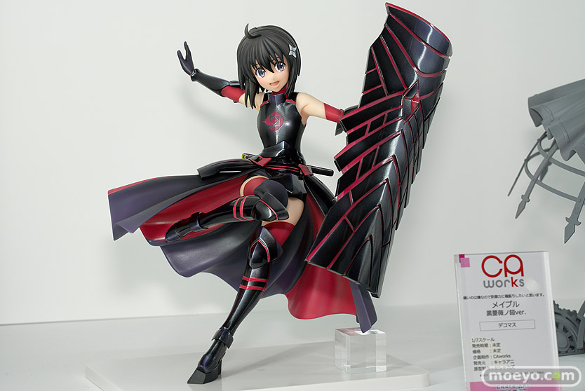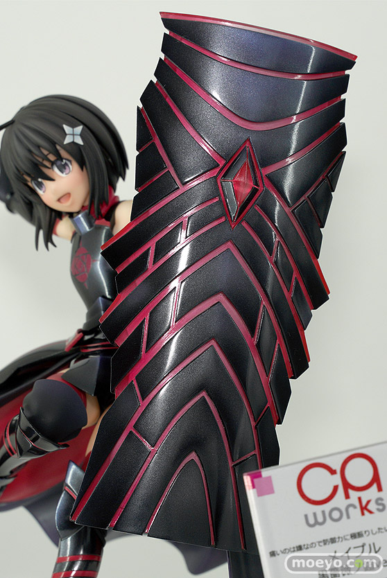 キャラアニ新作美少女フィギュア「CAworks 痛いのは嫌なので防御力に極振りしたいと思います。 メイプル 黒薔薇ノ鎧ver.」が予約受付開始!『バトルシーンを切り取ったかのような躍動感あるポーズと、片手で軽々と構えた大盾“闇夜ノ写”は、迫力の大ボリュームで造形しアクセントに透明パーツを使用して美しく仕上げました!』というもので、原型制作はヤシャカズさん。彩色はタケさん。企画制作はCAworksさん。「ワンホビ33」の会場で展示されていた彩色サンプルの様子を、画像レビューとしてお伝えします!