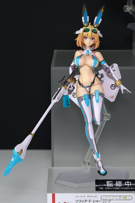 マックスファクトリー新作美少女フィギュア「figma バニースーツ プランニング ソフィア・F・シャーリング」が予約受付開始!『イラストレーター、高峰ナダレ氏のオリジナル作品『バニースーツプランニング』より「ソフィア・F・シャーリング」が水着テイストなバニースーツ姿で登場です。』というもので、、「笑顔」「ドヤ顔」「あせり顔」「目閉じ笑顔」の4種の表情、「シールドボード」「ロングウォーターガンランス」「ハンドウォーターガン」「ランス延長パーツ」×3個、等が付属。「ワンホビ33」の会場で展示されていた彩色サンプルの様子を、画像レビューとしてお伝えします!