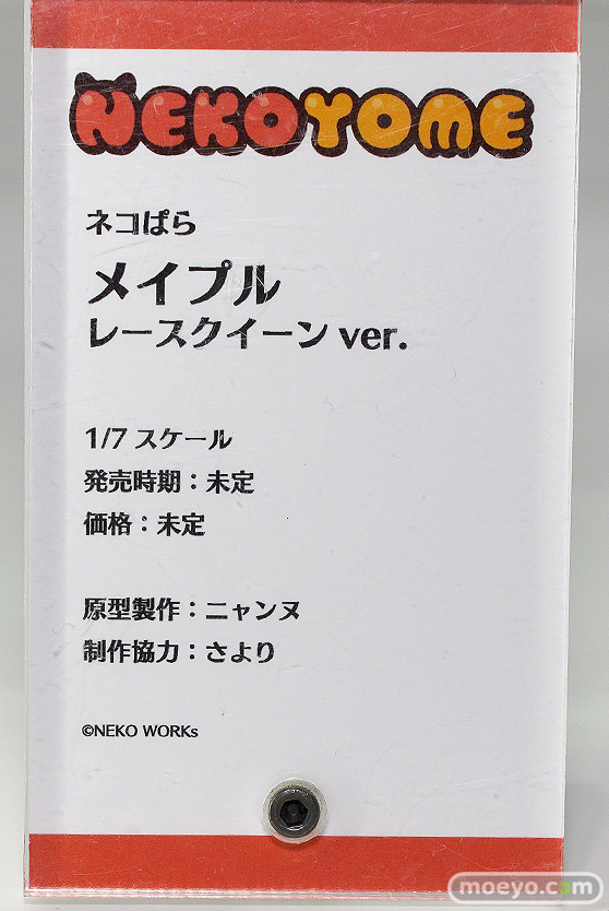 NEKOYOME新作美少女フィギュア「ネコぱら メイプル レースクイーン ver.」監修中原型が展示!【ワンホビ33】NEKOYOMEの新作美少女フィギュア「ネコぱら メイプル レースクイーン ver.」の監修中原型が、「ワンホビ33」の会場で展示!ゲームの原画を担当されているさよりさん自らが立ち上げたフィギュアブランド「NEKOYOME」の新作の一つで、大きく横にスリットがあるセクシーなメイド風レースクイーン衣装が特徴的な一品となっています!原型制作はニャンヌさん。制作協力はさよりさん。その展示の様子を画像レビューとしてお伝えします!