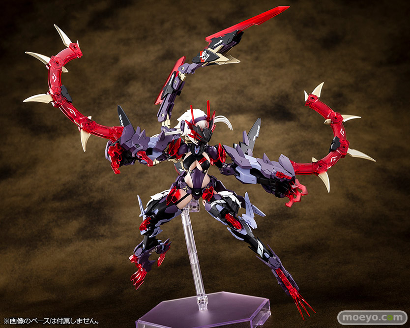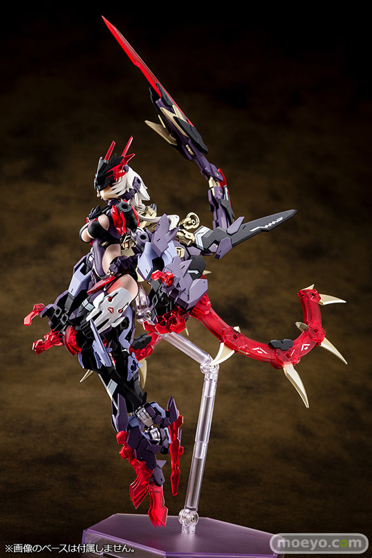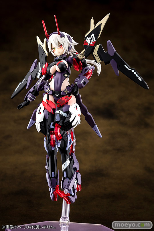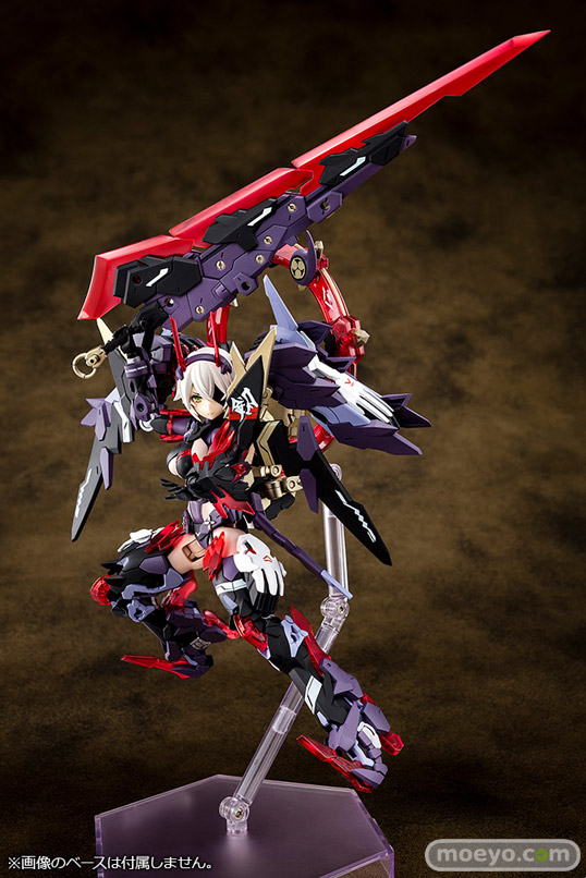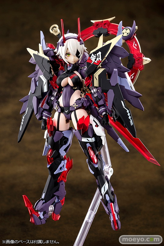 ボリュームアップした肢体、漆黒の多重装甲、それを支える金色のフレーム、鮮血のように煌くクリアパーツなど見どころ満載、現段階でのメガミデバイスフラグシップ機と言える存在です。メガミデバイスは可動美少女素体にウェポンやアーマーを装着して楽しむ組み立て式プラモデルシリーズです。