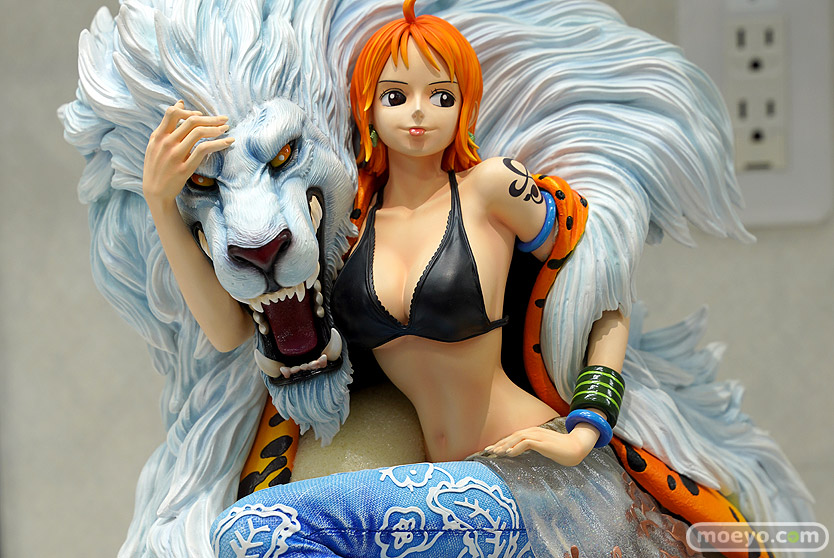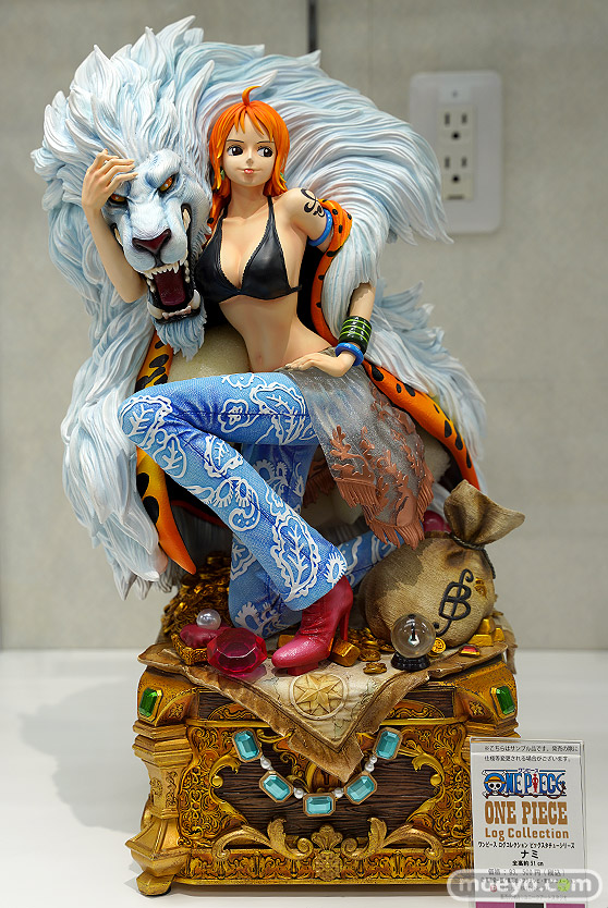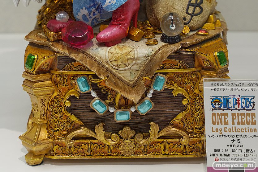 プレックスの新作美少女フィギュア「ワンピース ログコレクション 大型スタチューシリーズ ナミ」の彩色サンプルが、秋葉原のボークスホビー天国2にて展示!『迫力のある白獅子を羽織り得意げな表情で宝箱の上に鎮座するナミ!宝箱はオリジナルデザインで原画を更に引き立たせています。衣服、宝石にも高級感のある透明素材を施し商品を魅力的に仕上げました。』というアニメ“ONE PIECE”のDVDシリーズ「ONE PIECE Log Collection」より立体化のシリーズ第5弾となるもので、全高510mmのビッグスケールとなっています!原型制作はユニークアートスタジオさん。その展示の様子を画像レビューとしてお伝えします!