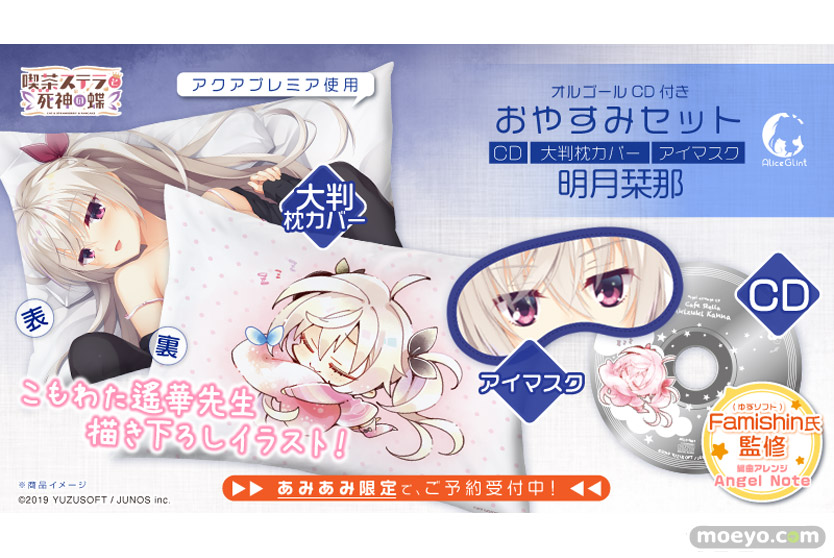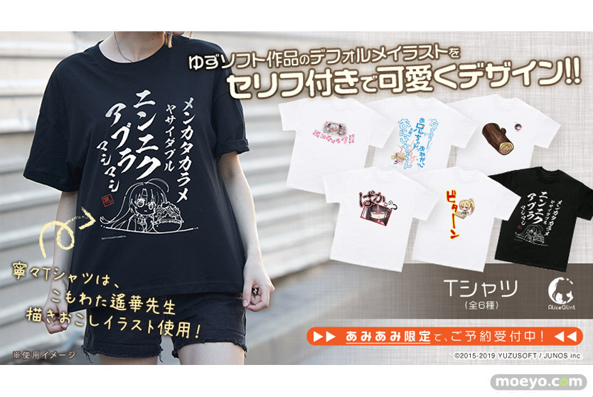 ゆずソフト『RIDDLE JOKE』より、「在原七海 ビターンTシャツ」、「シャワーカーテン 七海&茉優」などが、『サノバウィッチ』より、「綾地寧々 ラーメン呪文Tシャツ」、「シャワーカーテン 綾地寧々」などが、『喫茶ステラと死神の蝶』』より、「明月栞那 エロティック!!Tシャツ」、「オルゴールCD付きおやすみセット 明月栞那」などが、『千恋*万花』より、「のれん 常陸茉子」、「シャワーカーテン 芳乃&ムラサメ&レナ」など、多数のグッズが「あみあみ限定」グッズとして予約受付中!【あみあみ】