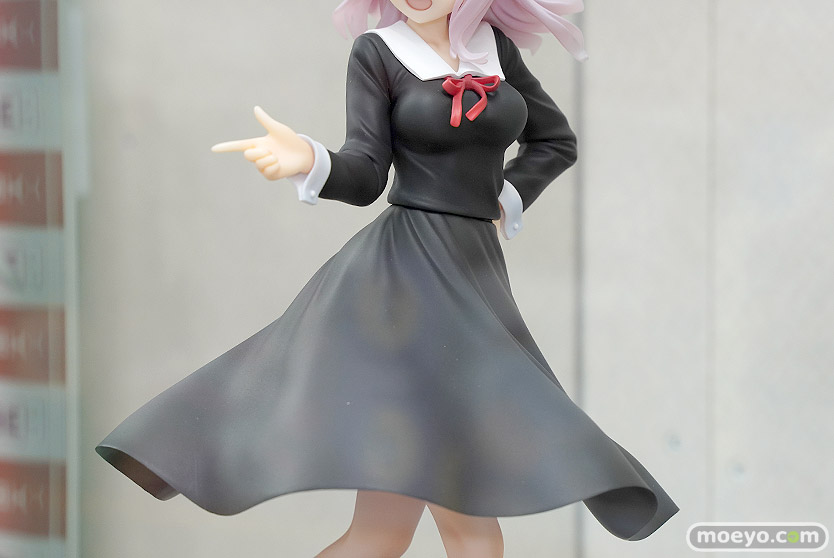 いよいよ2021年8月に発売予定のウェーブ新作美少女フィギュア「ドリームテック かぐや様は告らせたい~天才たちの恋愛頭脳戦~ [チカっとチカ千花っ] 藤原千花」の、おそらく製品版同等と思われる彩色サンプルが、秋葉原のあみあみ 秋葉原ラジオ会館店、ボークスホビー天国2で展示!『2019年に放送されたTVアニメ「かぐや様は告らせたい~天才たちの恋愛頭脳戦~」第1期3話EDで話題となった【チカっとチカ千花っ♡】の振り付け姿で立体化しました。IQ3でもまかせなさーい!の台詞が耳に残る「ラブ探偵チカの帽子」と、アタマについた「極黒リボン」はそれぞれ自由に脱着可能となっています。』というもので、原型制作は千鶴(鶴の館)さん。彩色はまいもっち(鶴の館)さん。その展示の様子を、画像レビューとしてお伝えします!