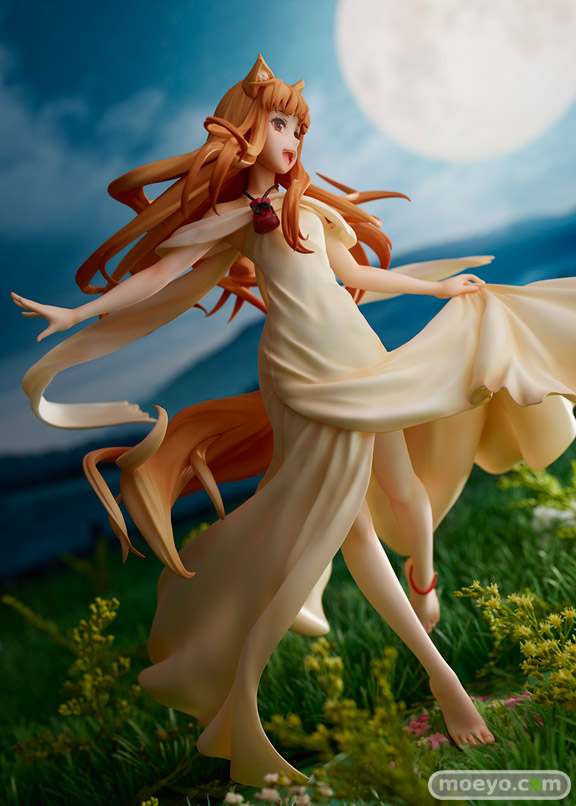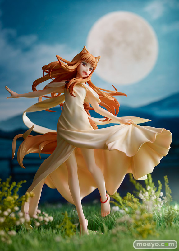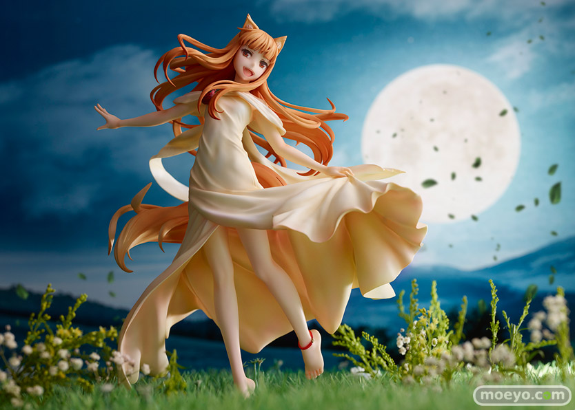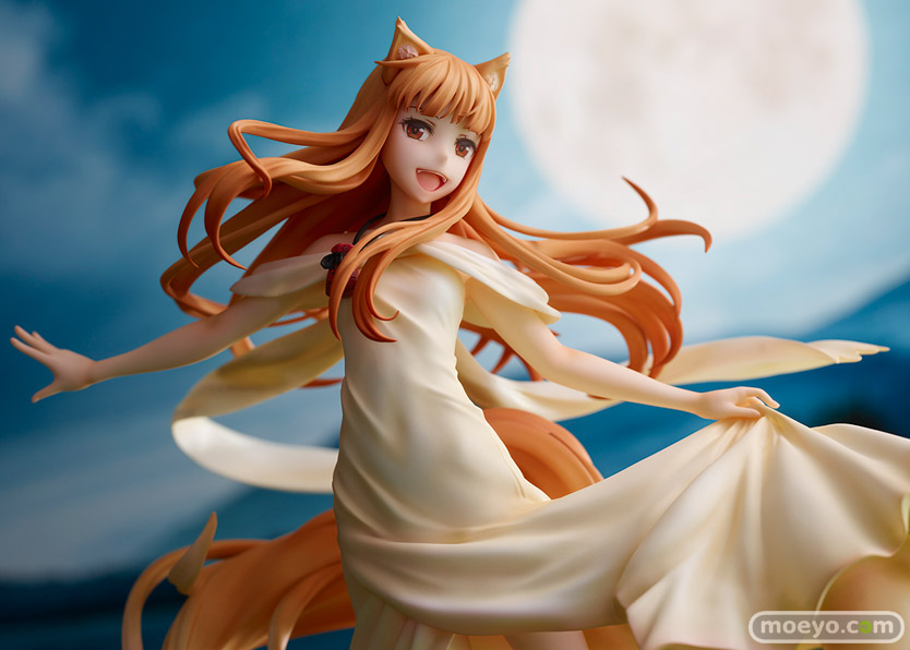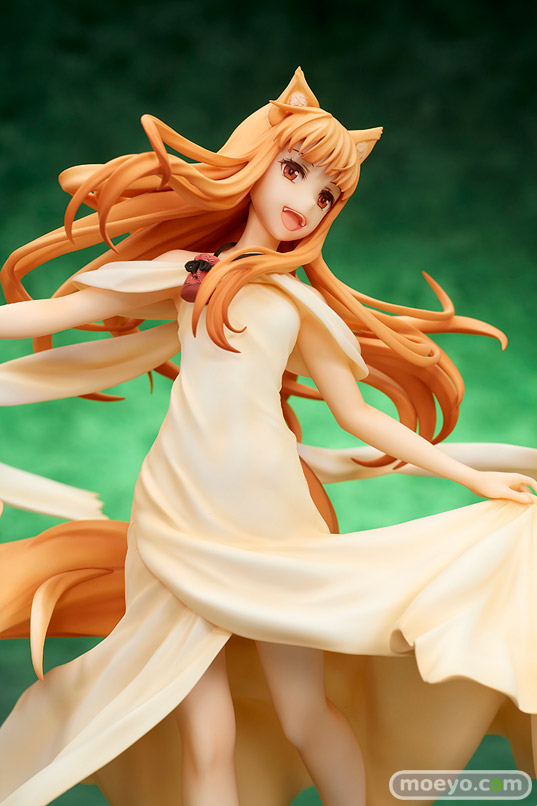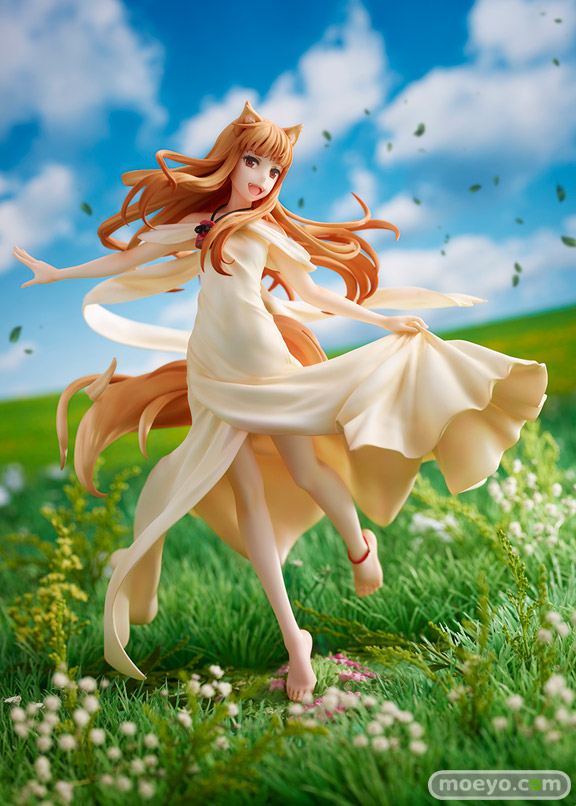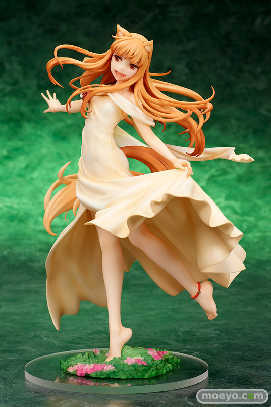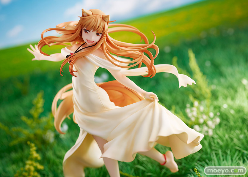 キューズQ新作美少女フィギュア「狼と香辛料 ホロ」予約受付開始!キューズQ新作美少女フィギュア「狼と香辛料 ホロ」が予約受付開始!『15周年を迎えた物語「狼と香辛料」から、賢狼ホロが無垢なワンピースを身にまとい登場じゃ。軽やかなステップで草原を歩む姿は、神々しさすら感じるじゃろ?髪、尻尾、ワンピースが華麗に舞い、どのアングルからでもわっちの美しさを堪能できる逸品じゃ。ぜひ、ぬしの手元に置いてくりゃれ。』というもので、原型制作は目出ル金さん。彩色製作は佐倉さん。そのサンプルの様子を、画像レビューとしてお伝えします!
