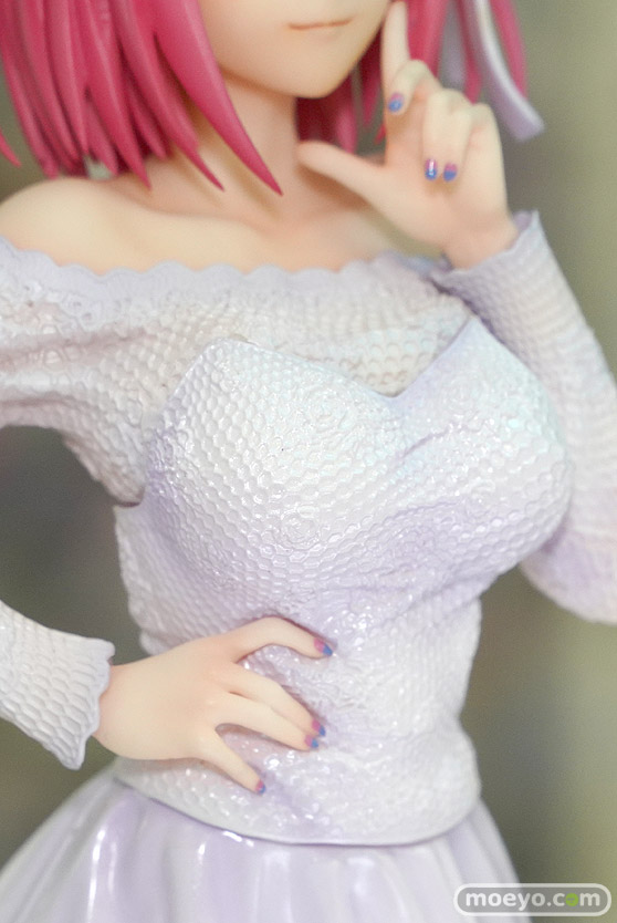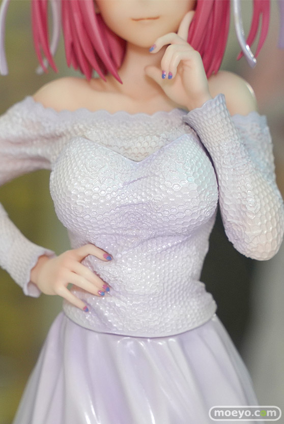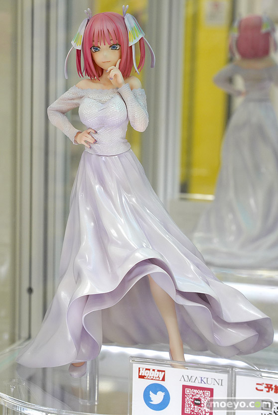 ホビージャパンの新作美少女フィギュア「五等分の花嫁∬ 中野二乃 ウェディングVer.」の彩色サンプルが、あみあみ 秋葉原ラジオ会館店で展示!『ウェディングドレスは清楚さを感じさせるパールホワイトに、二乃をイメージしたパープルのグラデーション塗装を加え、生地の高級感と質感を表現。ドレスの流れるようなシワの造形や、ドレスの裾からチラリと覗くキレイな脚のラインはファンなら必見の出来栄えとなっています。』というもので、原型制作はiTANDiさん。彩色見本製作はtaumokeiさん×ピンポイントさん。製造はAMAKUNIさん。その展示の様子を画像レビューとしてお伝えします!