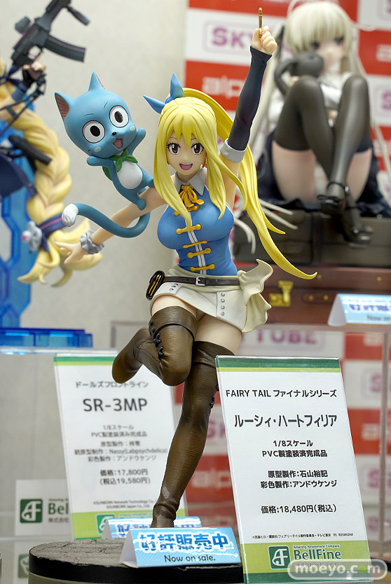 今月2021年8月に発売となったベルファインの新作美少女フィギュア「「FAIRY TAIL」ファイナルシリーズ ルーシィ・ハートフィリア」の、おそらく製品版同等と思われるPVC製の彩色サンプルが、秋葉原のボークスホビー天国2で展示!『星霊を呼び出す鍵を掲げ、天真爛漫なルーシィを再現しました。また、作品には欠かせないハッピーも付属。ルーシィ自慢の胸元、ウエスト、足のボディラインはもちろん、露出が高めの衣装の造形、塗装にもこだわりました。』というもので、原型制作は石山裕記さん。彩色製作はアンドウケンジさん。その展示の様子を画像レビューとしてお伝えします!