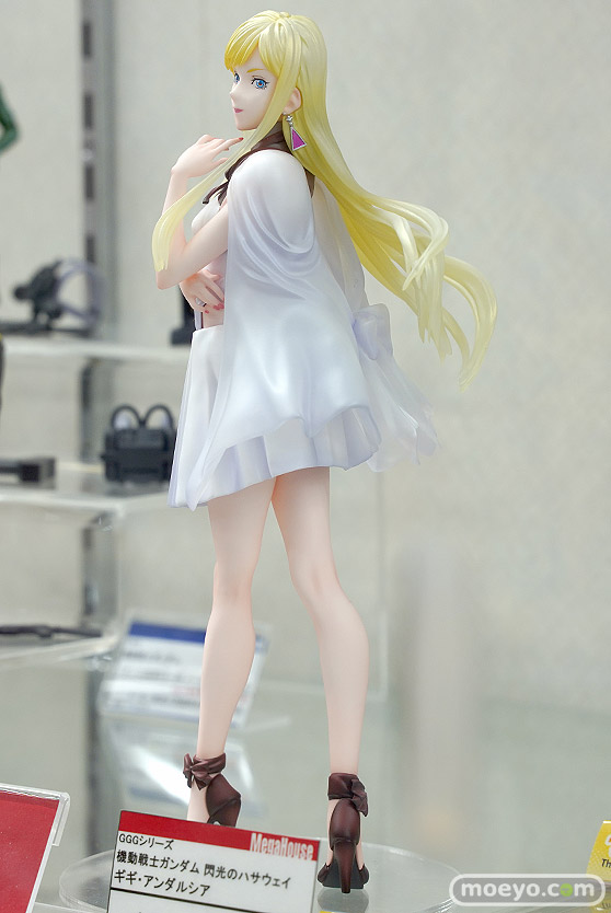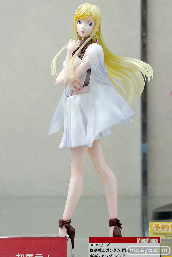 メガハウス新作美少女フィギュア「GGG(ガンダム・ガールズ・ジェネレーション) 機動戦士ガンダム 閃光のハサウェイ ギギ・アンダルシア」彩色サンプルがアキバで展示!メガハウスの新作美少女フィギュア「GGG(ガンダム・ガールズ・ジェネレーション) 機動戦士ガンダム 閃光のハサウェイ ギギ・アンダルシア」の彩色サンプルが、ボークスホビー天国2で展示!『エレガントで白い印象的な衣装で立体化しました。その衣装は一部にクリアパーツを使用することで、ワンピースの胸元から背中にかけてのシースルー感やケープの透明感を演出。造形は細部までこだわり抜き、劇中同様、男性たちを魅了するスタイリッシュなプロポーションを実現しています。』というもので、原型制作はキバヤシノリオさん。彩色はピンポイントさん。その展示の様子を画像レビューとしてお伝えします!
