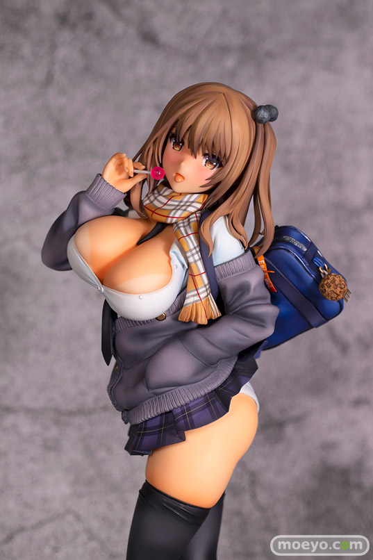 スカイチューブの新作美少女フィギュア「ギャルJK illustration by 魔太郎」が予約受付開始!『あどけなさが残るギャルJKを1/6スケールで立体化いたしました。日焼け跡が眩しい胸元や食い込んだニーハイ、キャンディを持つ可愛い指先など、魔太郎氏の原画の魅力を細微にわたり忠実に再現。キュートなお尻や脚線美も魅力です♪キャストオフ仕様で下着は2種付属。別表情の顔パーツと、3種の胸パーツを差し替える事で、貴方好みのスタイルをお楽しみいただけます。』というもので、原型制作は2%さん。その展示の様子を画像レビューとしてお伝えします!(アダルトフィギュアとなります!18歳未満の方は閲覧をお控えください。)