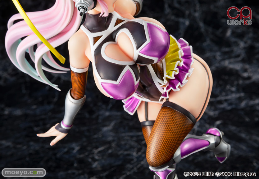 対魔忍の特徴となるボディラインを強調したスーツは重厚感のあるメタリック塗装で仕上げ、もう一つの特徴となるポニーテールはグラデーション塗装にこだわり立体感を演出しております。さらに躍動感あるダイナミックなポーズにより「すーぱーそに子」の魅力を余すことなく再現しました!