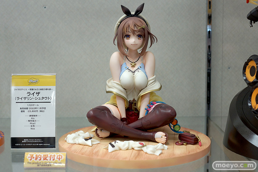 ファット・カンパニーの新作美少女フィギュア「ライザのアトリエ ~常闇の女王と秘密の隠れ家~ ライザ(ライザリン・シュタウト)」の彩色サンプルが、アキバのボークスホビー天国2で展示!『あぐらをかきつつ上着を着崩し、各装備を外してリラックスした姿にて立体化しました。ちょっと得意げな表情やスタイルの良さが強調されるポーズ、各パーツの作り込みや質感豊かな表現の彩色など随所にこだわりを詰め込みました。また、さらに上着は着脱も可能ですので、ゲーム内で人気のコスチューム「サマーアドベンチャー!」を再現し、お楽しみいただける作りになっています!』というもので、原型制作はAinさん。彩色はNoaさん。制作協力はPhat!さん。その展示の様子を画像レビューとしてお伝えします!