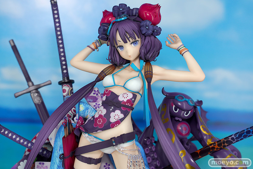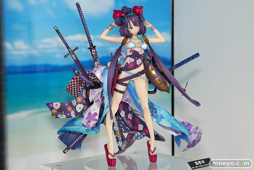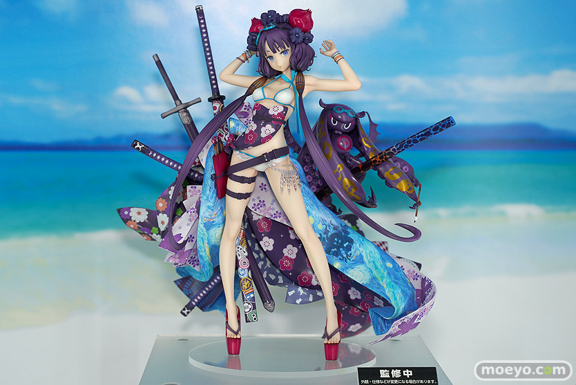 グッドスマイルカンパニーの新作美少女フィギュア「Fate/Grand Order セイバー/葛飾北斎」の彩色サンプルが、「ワンホビ33」の会場で展示!『大胆な水着姿が映える均整の取れた肢体に、著名な画工の作品を思わせる反物を身に纏い、名だたる剣豪もびっくりの”四本刀”を掲げた自信たっぷりな様子を精巧かつ魅力的に再現いたしました。』というもので、原型制作・彩色はらんらんさん。その展示の様子を画像レビューとしてお伝えします!