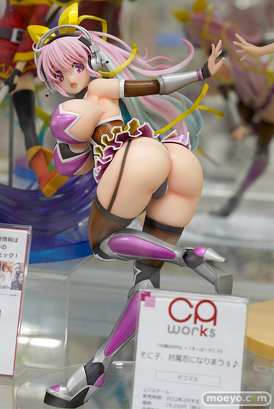 キャラアニの新作美少女フィギュア「CAworks 『対魔忍RPG×すーぱーそに子』 そに子、対魔忍になりまうs♪」の彩色サンプルが、あみあみ 秋葉原ラジオ会館店で展示!『対魔忍の特徴となるボディラインを強調したスーツは、重厚感のあるメタリック塗装で仕上げ、もう一つの特徴となるポニーテールは、グラデーション塗装にこだわり立体感を演出しております。さらに躍動感あるダイナミックなポーズにより「すーぱーそに子」の魅力を余すことなく再現しました!』というもので、原型制作はミロさん。彩色はタケさん。制作協力は正村制作所さん。企画制作はCAworksさん。その展示の様子を画像レビューとしてお伝えします!