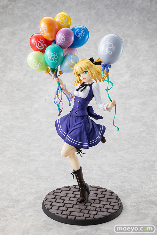セイバー/アルトリア・ペンドラゴン〔リリィ〕 英霊祭装Ver.は、2019年に開催されたリアルイベント「Fate/Grand Order Fes. 2019 ~カルデアパーク~」用に描き下ろされたイラストをモチーフに立体化。「カルデアパーク」のキャストに扮してたくさんの風船を手に軽やかにステップを踏んでいる姿を再現しています。また、あどけなさを残した笑顔によって、彼女のウキウキした気持ちを表現。両手の風船はもちろん、動きに合わせてなびくポニーテールの髪や衣装の質感なども丁寧に制作しています。